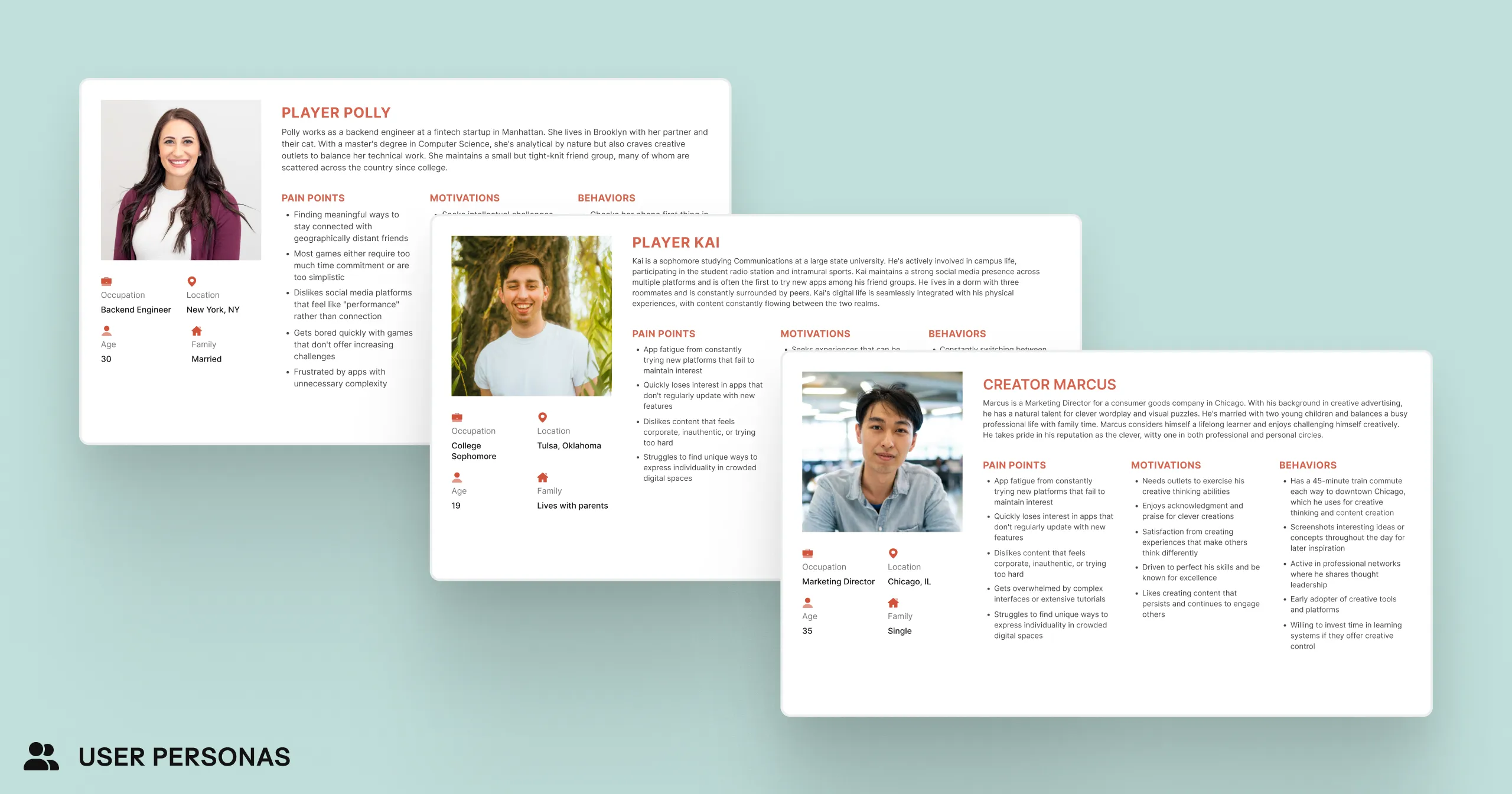 We translated these findings into user personas, ensuring every feature addressed the specific motivations and pain points of our target audience.