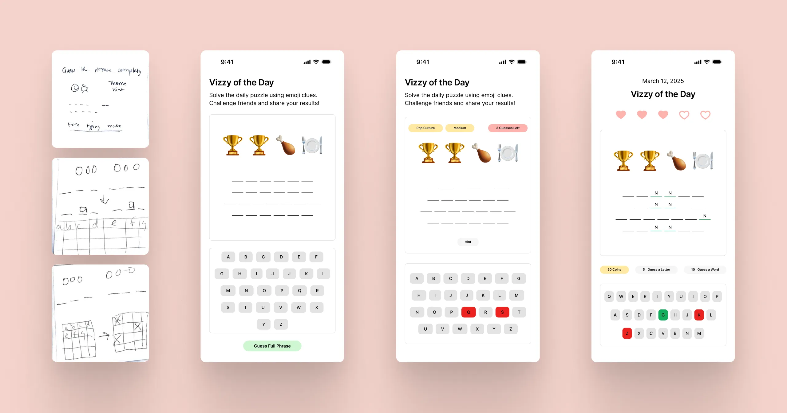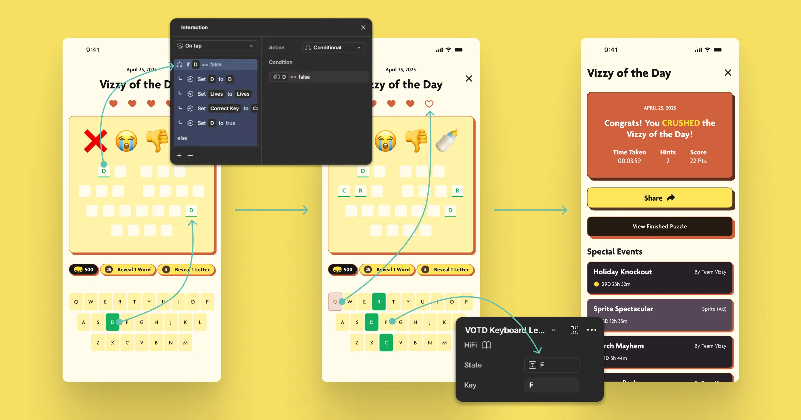 Leveraging Figma’s advanced prototyping capabilities, we developed a fully functional 'Vizzy of the Day' game mode.
